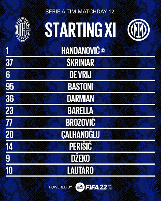 Score final : AC Milan 1-1 Inter (MIL : Stefan de Vrij (CSC) 17 mn / INT : Hakan Calhanoglu (SP) 11 mn)