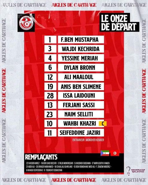 Suivez avec nous sur Kawarji à partir de 17h00 l'évolution du score de la rencontre de la sélection tunisienne en éliminatoires de la Coupe du Monde 2022 :