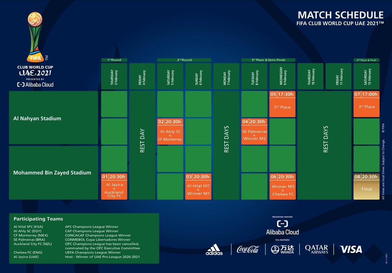 La FIFA a communiqué le programme détaillé de la Coupe du Monde des Clubs qui se tiendra aux Emirats Arabes Unis au mois de février 2022.