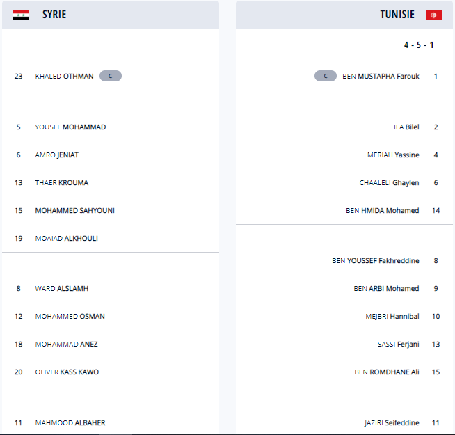 41 mn : 60% de la possession du ballon est tunisienne face à des syriens qui abusent avec les blessures et la perte du temps