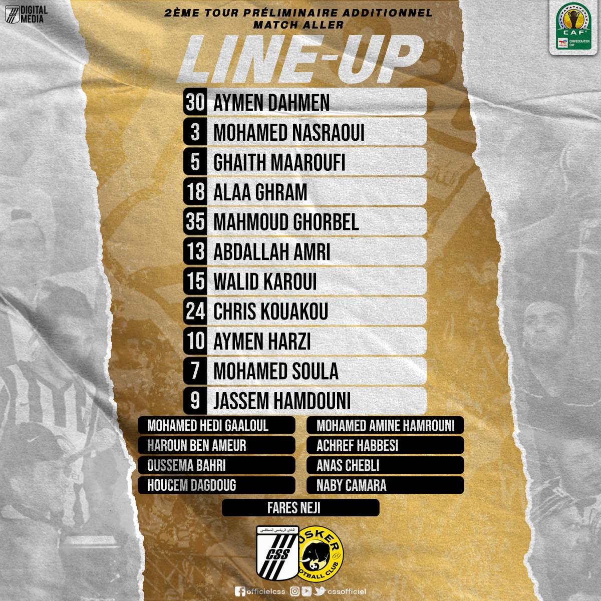 Voici la formation rentrante du Club Sportif Sfaxien qui sera opposé cet après midi à partir de 18h00 aux kenyans de Tusker FC au dernier tour préliminaire retour de la Coupe de la Confédération :