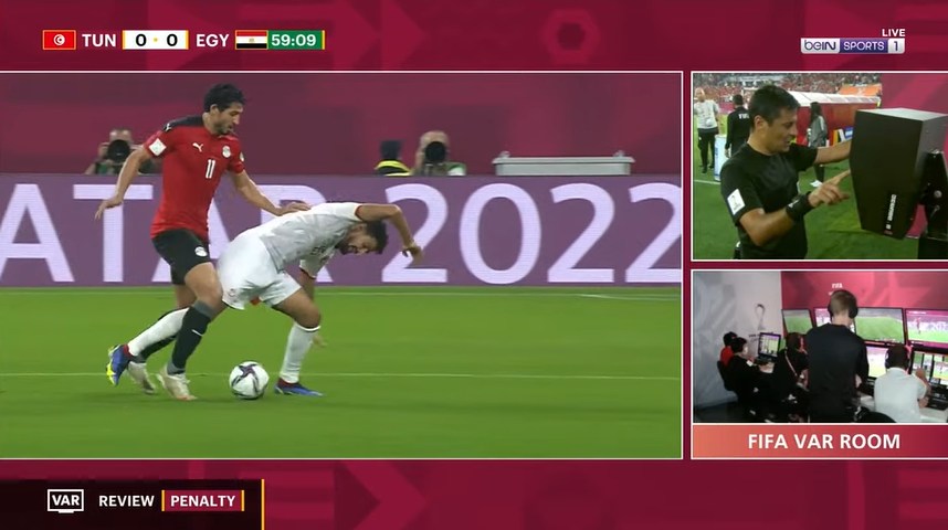59 mn : Penalty pour la Tunisie après une faute sur Ben Romdhane (recours à la VAR)