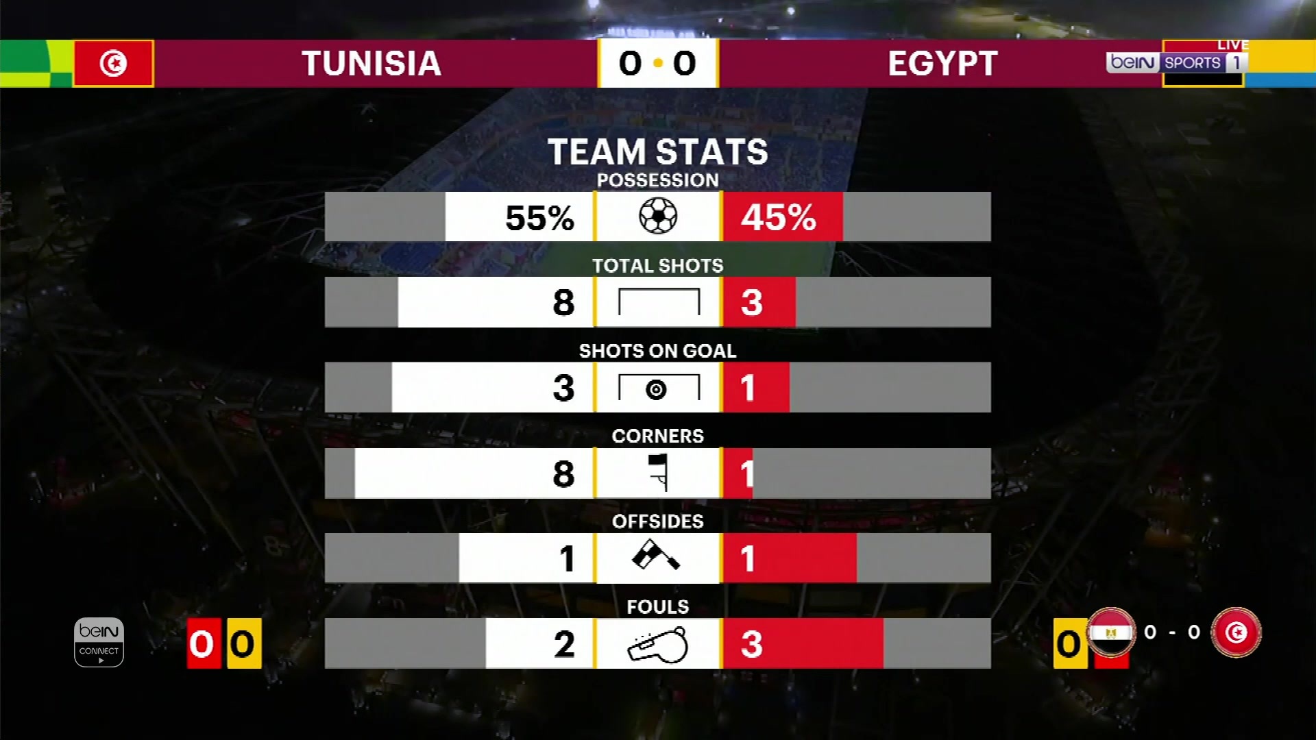 43 mn : La couverture dans les couloirs tunisiens n'est pas optimale depuis le début de la rencontre