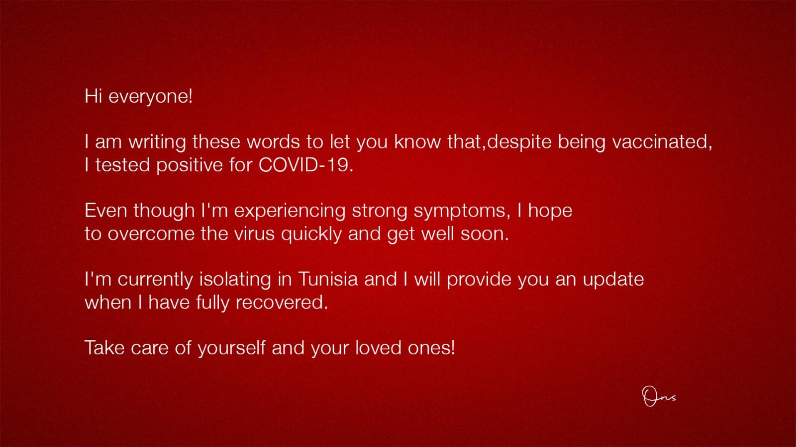 La tenniswoman tunisienne a indiqué que malgré le fait d'avoir reçue ses doses du vaccin, elle a été testée positive.