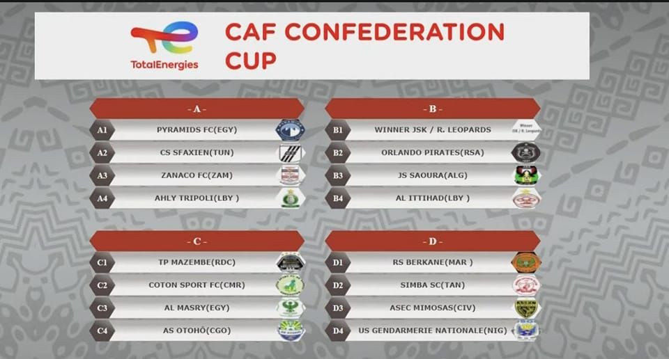 Groupe 1 : Pyramids FC (Egypte), Club Sportif Sfaxien (Tunisie), Zanaco FC (Zambie), Ahly Tripoli (Libye)