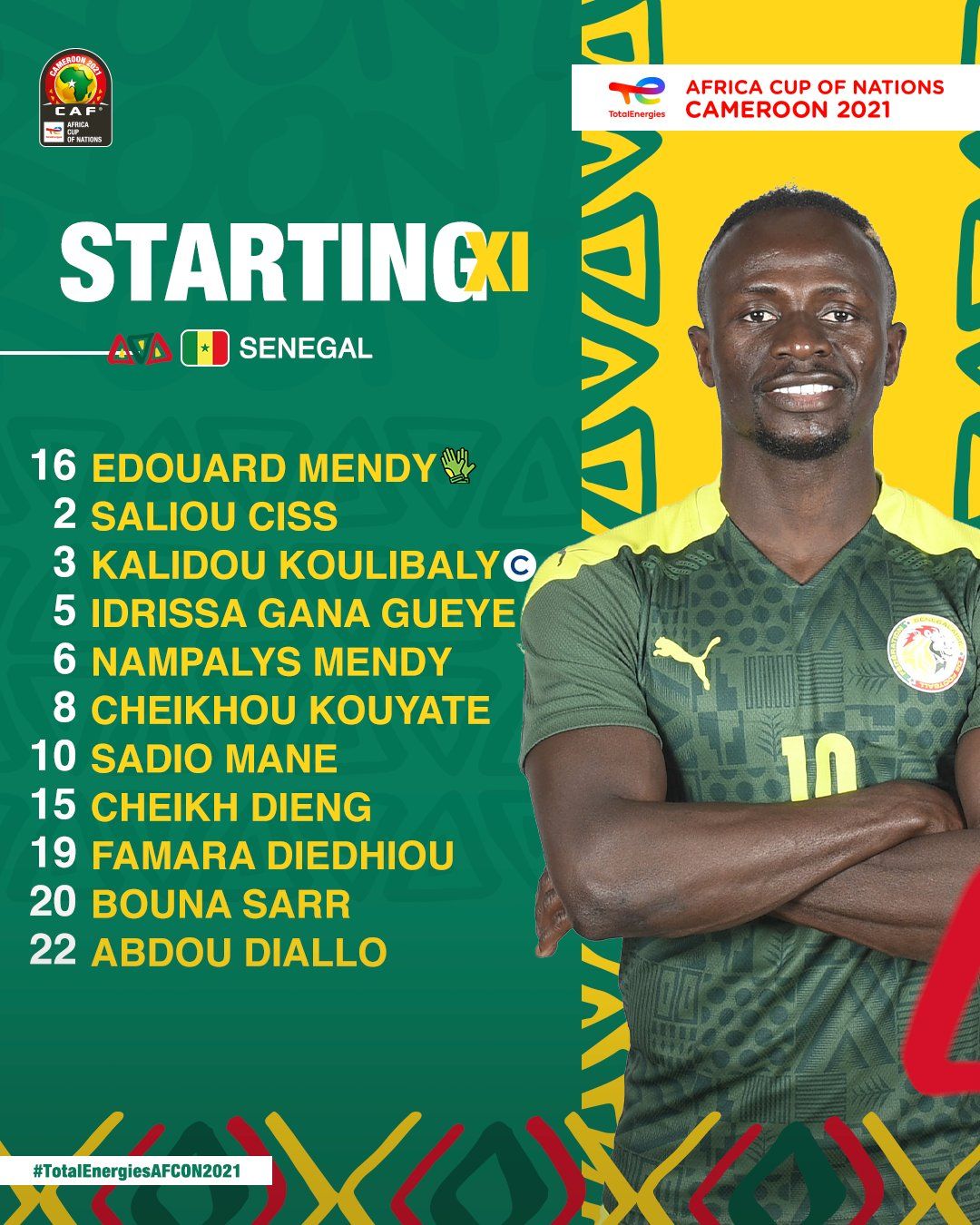 Suivez avec nous sur Kawarji à partir de 20h00 l'évolution du score de la première demi-finale de la CAN 2021 qui opposera le Sénégal au Burkina Faso :