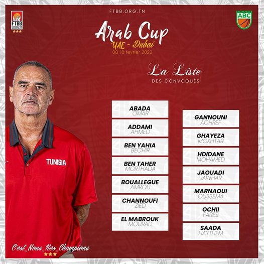 La Fédération Tunisienne de Basket-ball a communiqué la liste des joueurs convoqués pour disputer la Coupe Arabe des Nations.