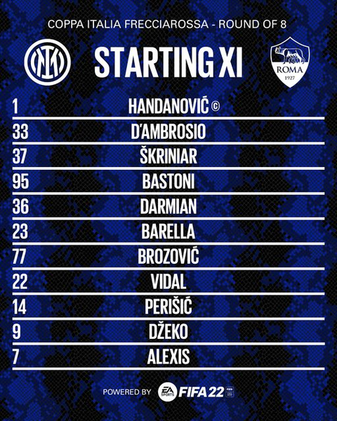 Suivez avec nous sur Kawarji à partir de 21h00 l'évolution du score du quart de finale de la Coupe d'Italie qui opposera l'Inter à l'AS Rome :