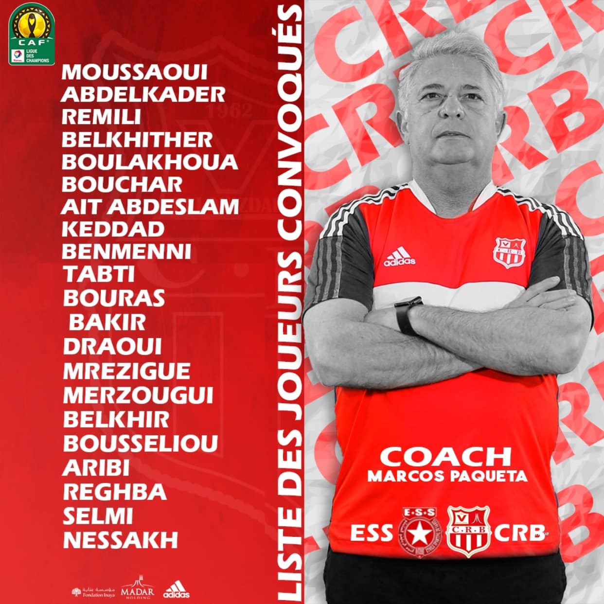 La formation algérienne du Chabab Riadhi Belouizdad a communiqué la liste des joueurs convoqués en vue de la rencontre qui l'opposera à l'Etoile Sportive du Sahel.