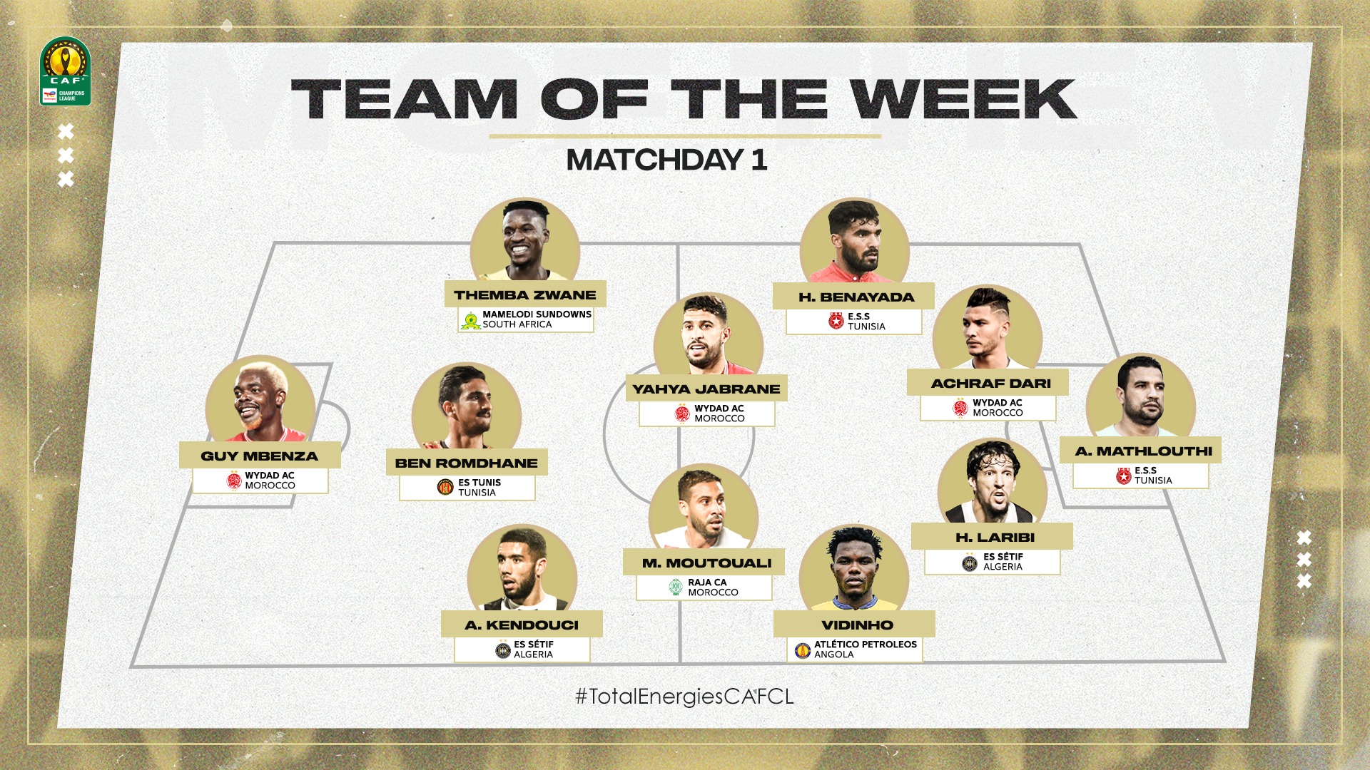 La Confédération Africaine de Football a communiqué la composition de l'équipe type de la première journée de la phase des poules en Ligue des Champions.