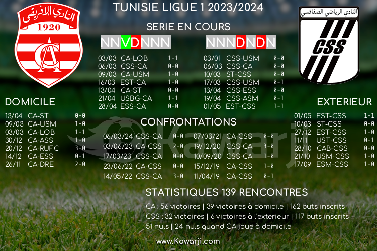 Stade Hamadi Agrebi de Rades : Club Africain 17h00 Club Sportif Sfaxien