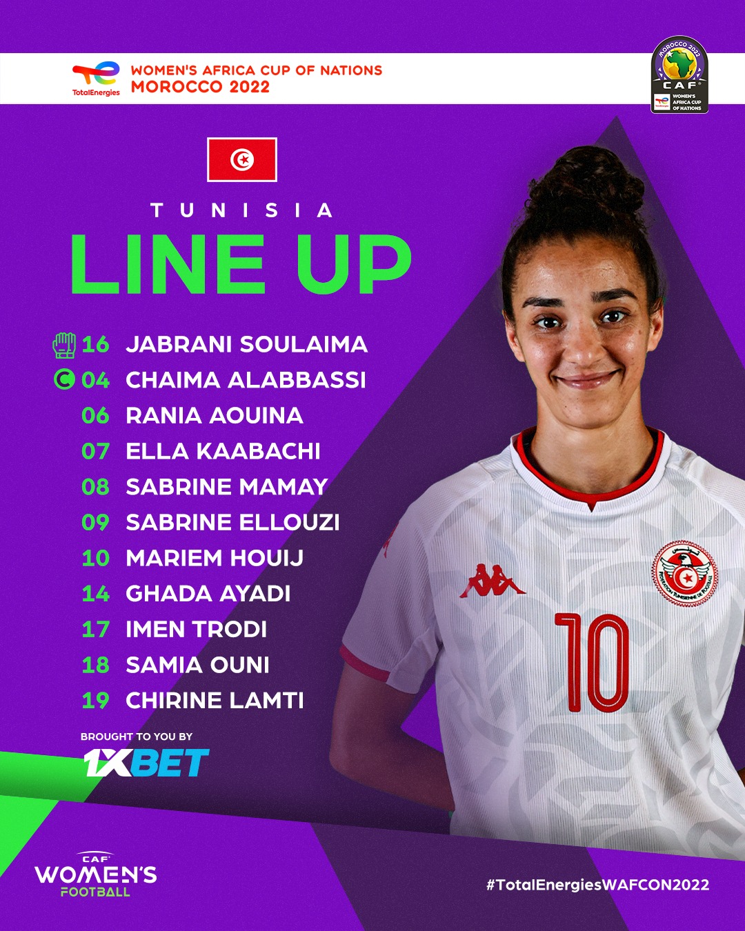 Suivez avec nous sur Kawarji à partir de 21h00 l'évolution du score du match de la sélection tunisienne féminine face au Cameroun en Coupe d'Afrique des Nations :