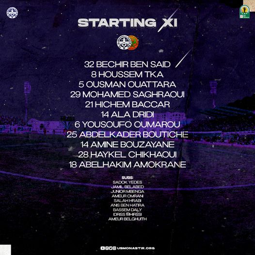 Voici la formation rentrante de l'Union Sportive Monastirienne qui affrontera ce mercredi les marocains de l'ASKO de Kara au second tour additionnel aller de la Coupe de la Confédération :