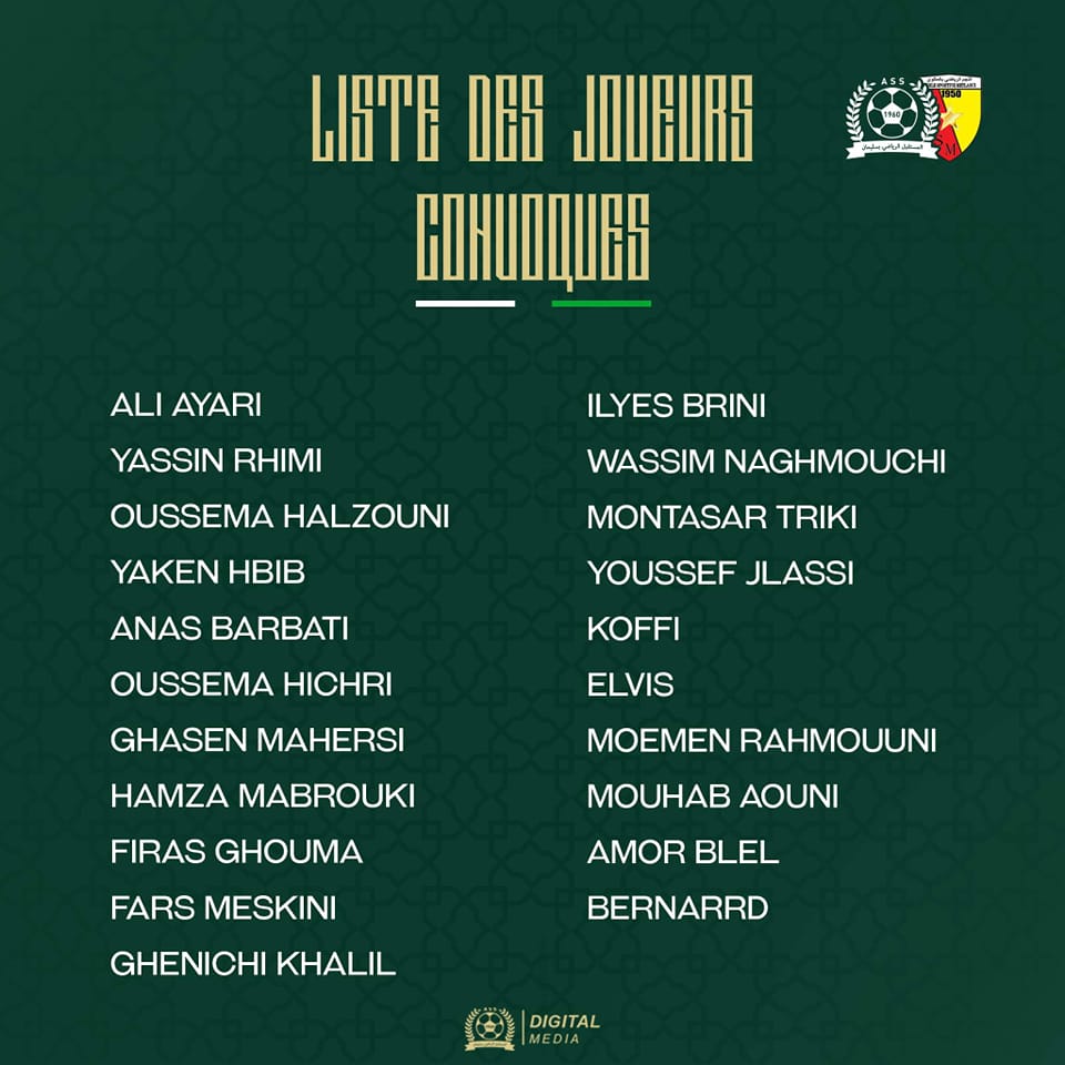Voici la liste des joueurs de l'AS Soliman convoqués pour affronter ce jeudi à partir de 14h30 l'ES Métlaoui pour le compte de la 5ème journée du groupe B au championnat de Ligue 1 :