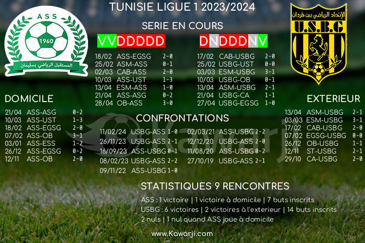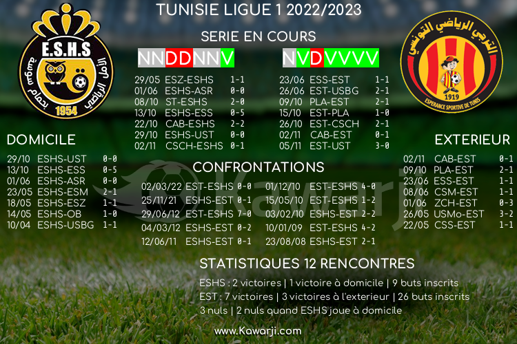 Avant les rencontres prévues ce mercredi pour le compte de la 7ème journée de Ligue 1 tunisienne 2022-2023, voici l'historique et les statistiques relatifs à ces confrontations :