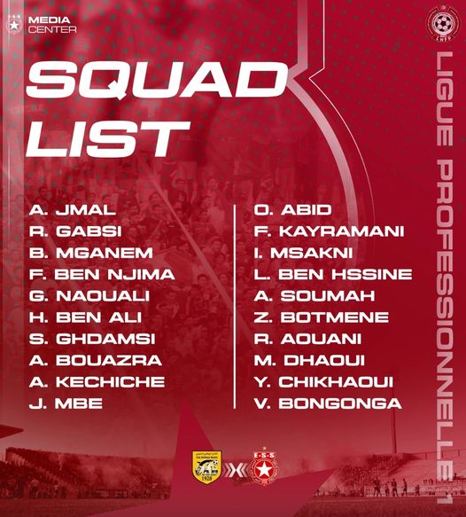 Voici la liste des joueurs de l'Etoile Sportive du Sahel convoqués pour affronter ce jeudi le Club Athlétique Bizertin à partir de 14h30 pour le compte de la 7ème journée du groupe A au championnat de Ligue 1 :