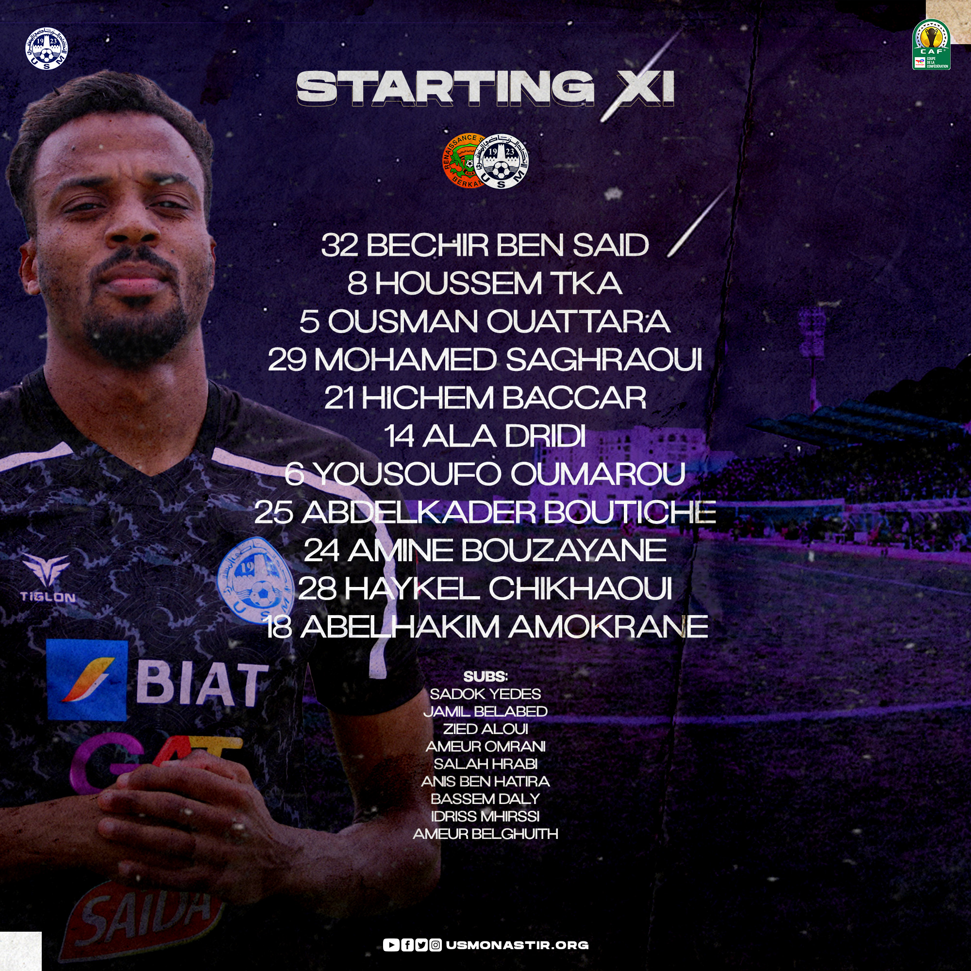 Voici la formation rentrante de l'Union Sportive Monastirienne qui affrontera ce mercredi les marocains de la RS Berkane au second tour additionnel retour de la Coupe de la Confédération :