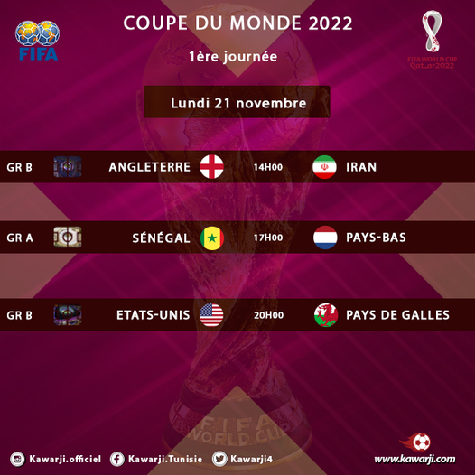 Voici le programme des matches de ce lundi au Mondial 2022 :