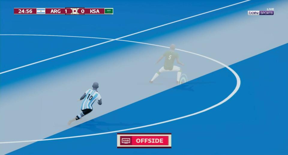 26 mn : Un nouveau but argentin inscrit par Martinez a été annulé par la VAR pour cause de hors jeu