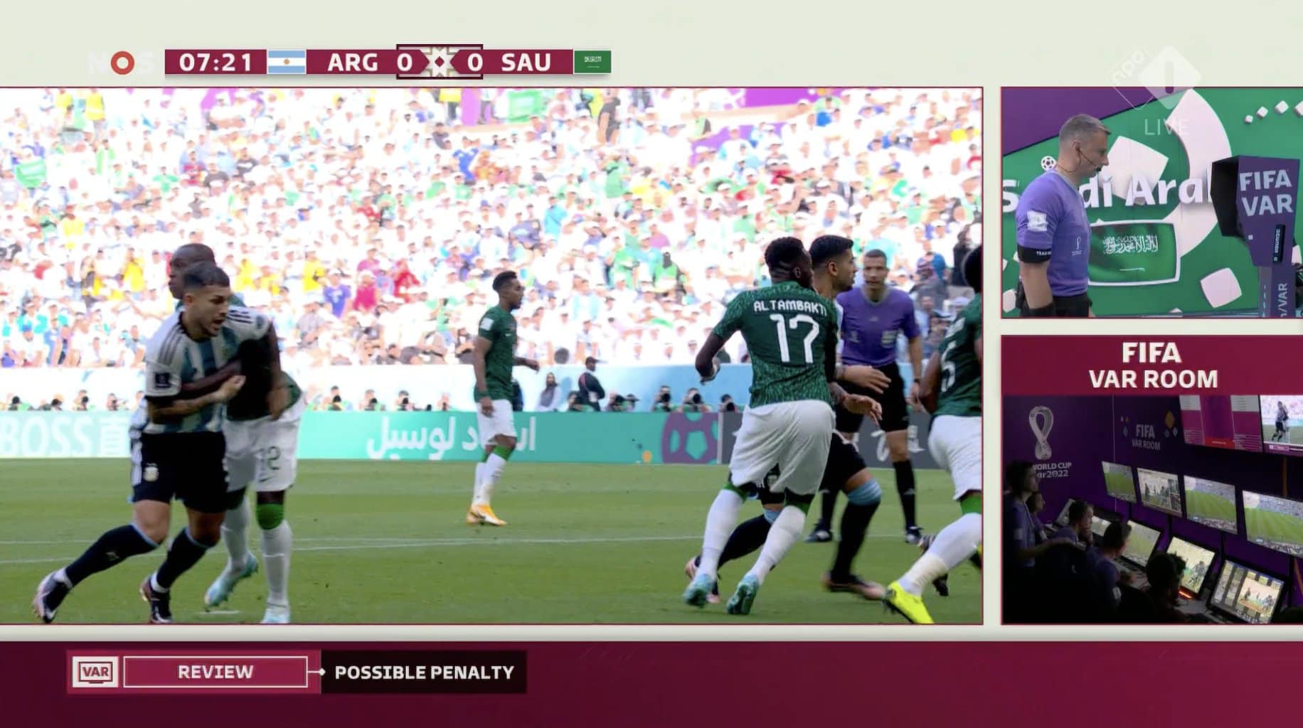 8 mn : Penalty très sévère en faveur de l'Argentine après une intervention de la VAR