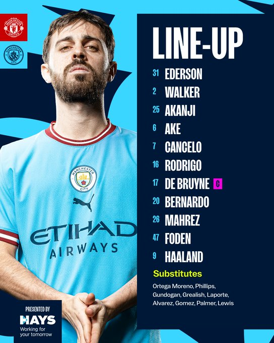Suivez avec nous sur Kawarji à partir de 13h30 l'évolution du score du derby entre Manchester United et Manchester City en Premier League :
