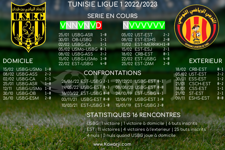 Avant les rencontres prévues ce jeudi pour le compte de la 1ère journée de la phase de play-off en Ligue 1 tunisienne 2022-2023, voici l'historique et les statistiques relatifs à ces confrontations :