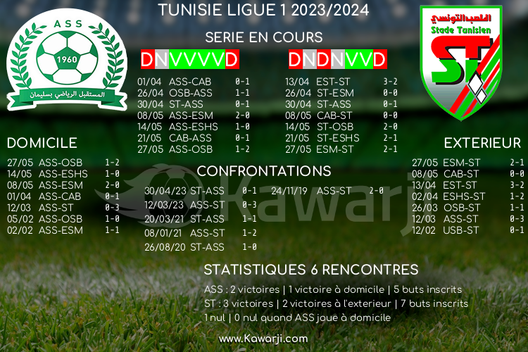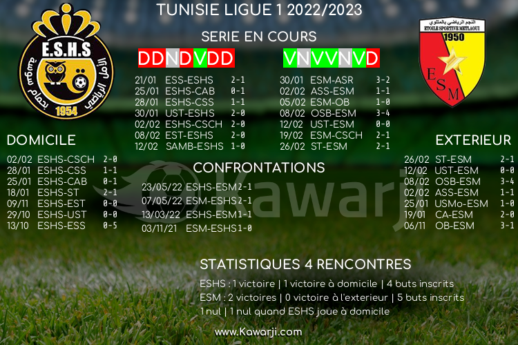 Avant les rencontres prévues ce dimanche pour le compte de la 1ère journée de la phase de play-out en Ligue 1 tunisienne 2022-2023, voici l'historique et les statistiques relatifs à ces confrontations :