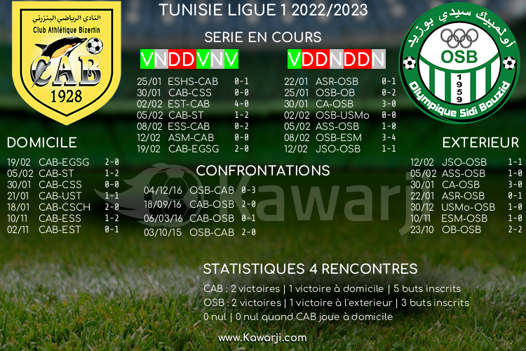 Club Athlétique Bizertin 14h30 Olympique Sidi Bouzid