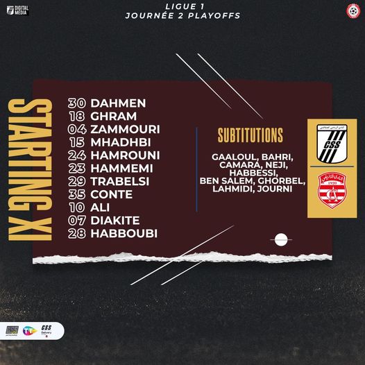 Voici la formation rentrante du Club Sportif Sfaxien qui affrontera cet après midi le Club Africain pour le compte de la deuxième journée de la phase de play-off en Ligue 1 :