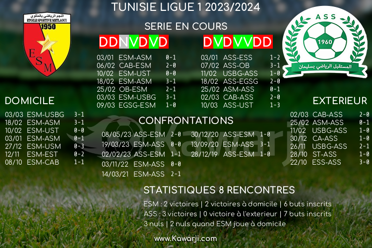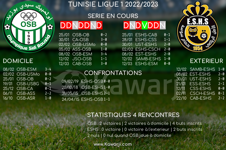 Avant les rencontres prévues ce dimanche pour le compte de la 2ème journée de la phase de play-out en Ligue 1 tunisienne 2022-2023, voici l'historique et les statistiques relatifs à ces confrontations :