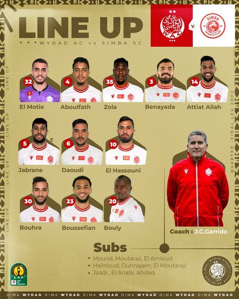 Suivez avec nous sur Kawarji à partir de 20h00 l'évolution du score du match entre le Wydad Casablanca et Simba SC en quarts de finale retour de la Ligue des Champions :