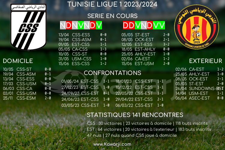 Avant la rencontre prévue ce mercredi pour le compte de la 5ème journée de la phase de play-off en Ligue 1 tunisienne 2022-2023, voici l'historique et les statistiques relatifs à cette confrontation :