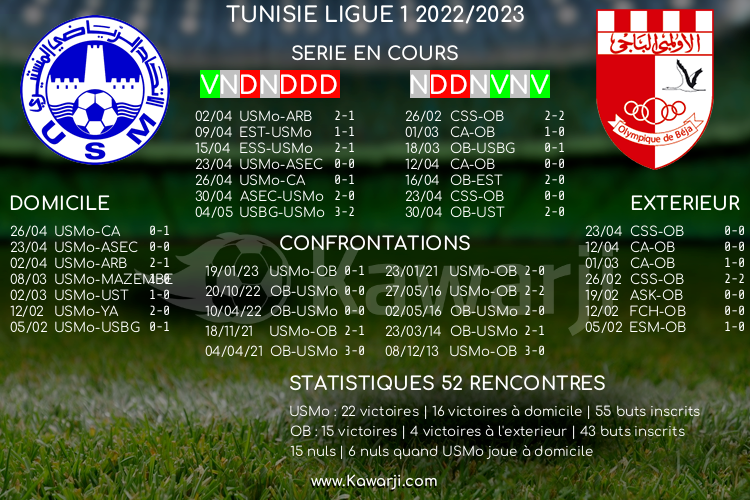 Avant la rencontre prévue ce lundi pour le compte de la 6ème journée de la phase de play-off en Ligue 1 tunisienne 2022-2023, voici l'historique et les statistiques relatifs à cette confrontation :