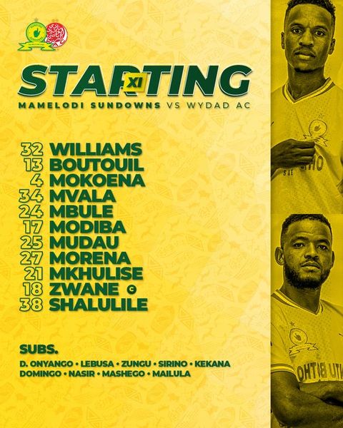 Suivez avec nous sur Kawarji à partir de 20h00 l'évolution du score du match de Mamelodi Sundowns face au Wydad Casablanca en demi-finale retour de la Ligue des Champions :