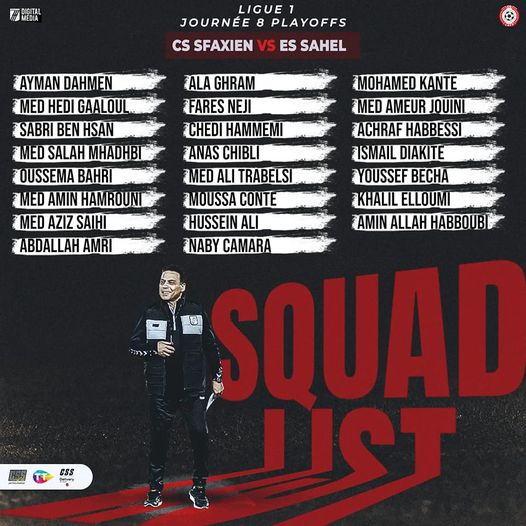 Le staff technique du Club Sportif Sfaxien a communiqué la liste des joueurs convoqués en vue de la rencontre de la 8ème journée de la phase de play-off en Ligue 1.
