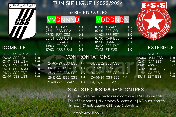 Avant les rencontres prévues ce samedi pour le compte de la 8ème journée de la phase de play-off en Ligue 1 tunisienne 2022-2023, voici l'historique et les statistiques relatifs à ces confrontations :