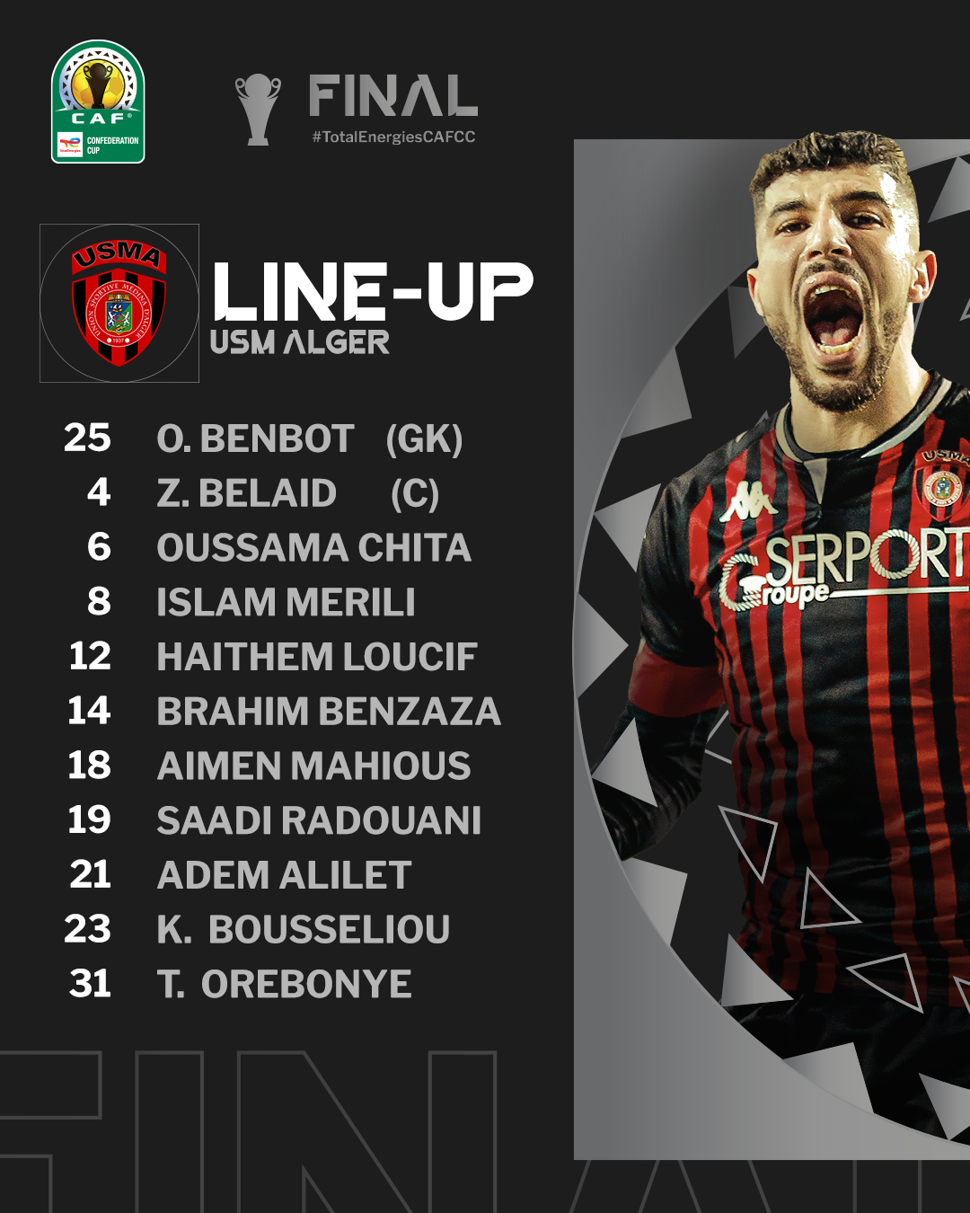 Score final : Young Africans 1-2 USM Alger (YOU : Fiston Mayele 82 mn / USMA : Aymen Mahious 32 mn, Islam Merili 84 mn)