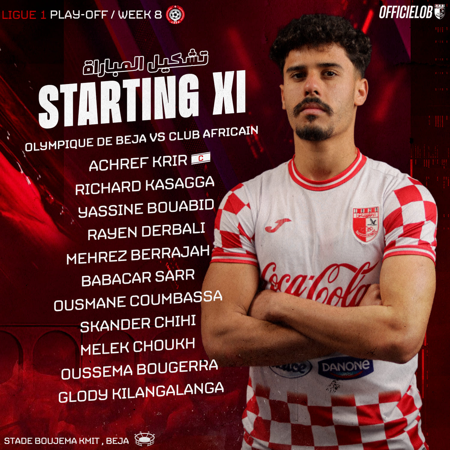 Suivez avec nous sur Kawarji à partir de 16h00 l'évolution du score de la rencontre de la 8ème journée de play-off en Ligue 1 entre l'Olympique de Béja et le Club Africain :