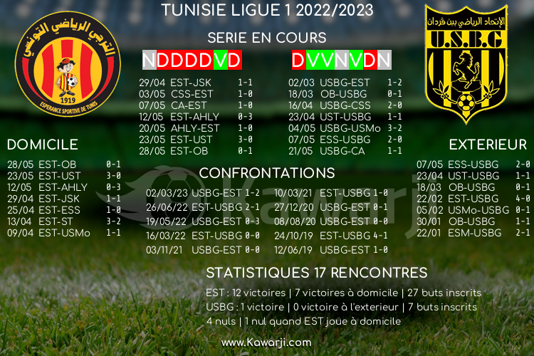 Avant la rencontre prévue ce jeudi pour le compte de la 8ème journée de la phase de play-off en Ligue 1 tunisienne 2022-2023, voici l'historique et les statistiques relatifs à cette confrontation :