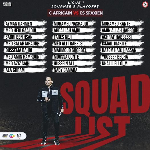 Le staff technique du Club Sportif Sfaxien a communiqué la liste des joueurs convoqués en vue de la rencontre de la 9ème journée de la phase de play-off en Ligue 1.