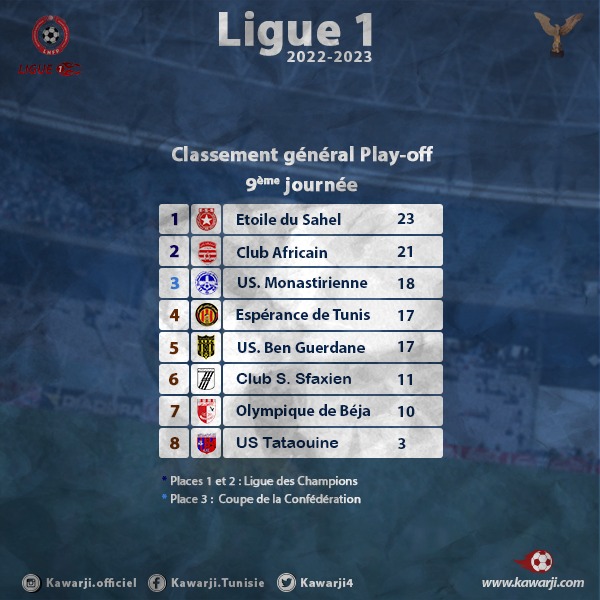 Voici le classement général de la phase de play-off en Ligue 1 avant les matches de la 10ème journée :