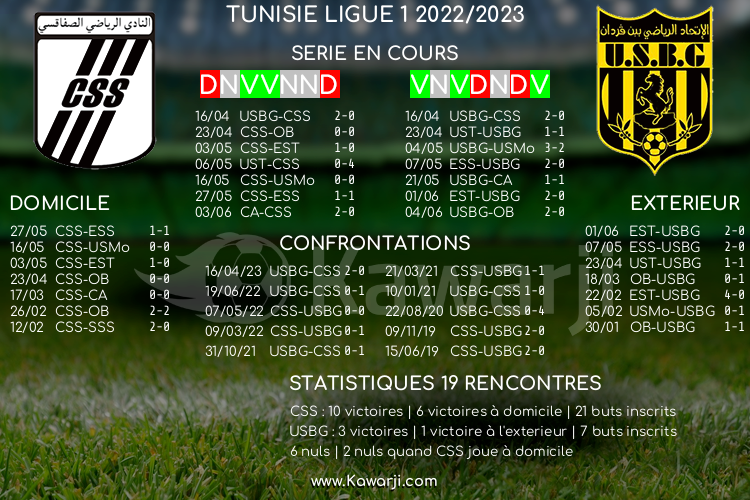 Avant la rencontre prévue ce jeudi pour le compte de la 10ème journée de la phase de play-off en Ligue 1 tunisienne 2022-2023, voici l'historique et les statistiques relatifs à cette confrontation :