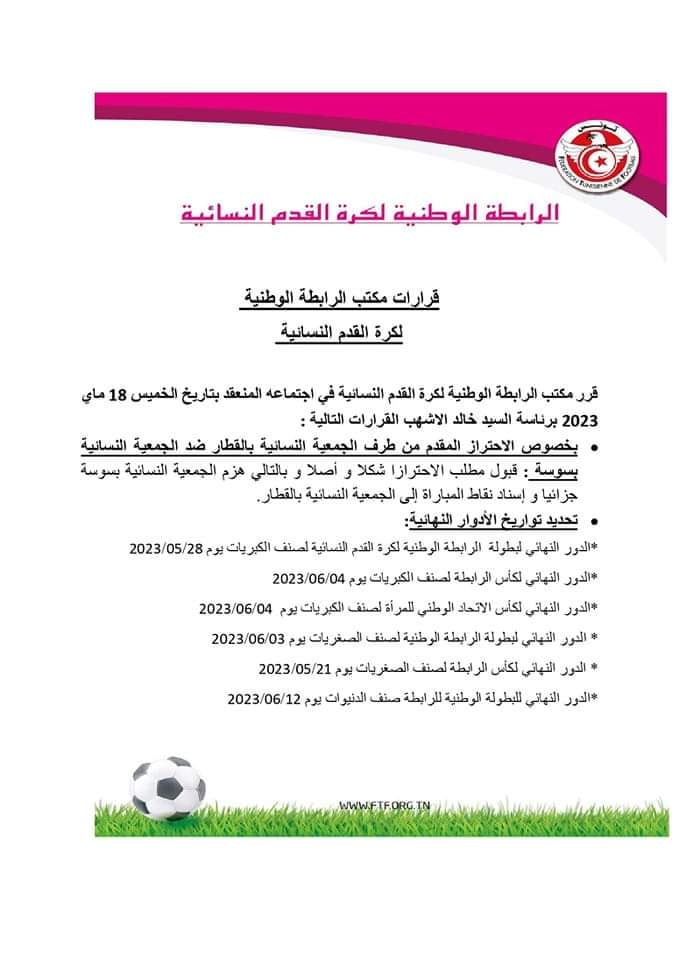 Selon les dirigeants de l'Equipe Féminine de Bouhajla, les membres de la commission d'appel avaient décidé d'inverser une première décision de la Ligue Nationale du Football Féminin dans ce dossier qui concerne l'âge des joueuses autorisées à prendre part aux matches du championnat féminin, sur la base de règlements édités en 2017 alors que la Fédération Tunisienne de Football les avait mis à jour en 2021.
