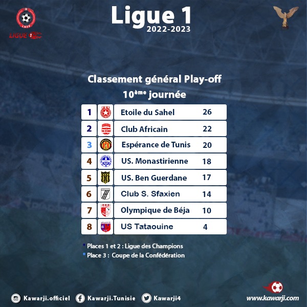 Voici le classement général de la phase de play-off en Ligue 1 avant les matches de la 11ème journée :