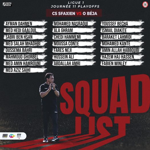 Le staff technique du Club Sportif Sfaxien a communiqué la liste des joueurs convoqués en vue de la rencontre de la 11ème journée de la phase de play-off en Ligue 1.