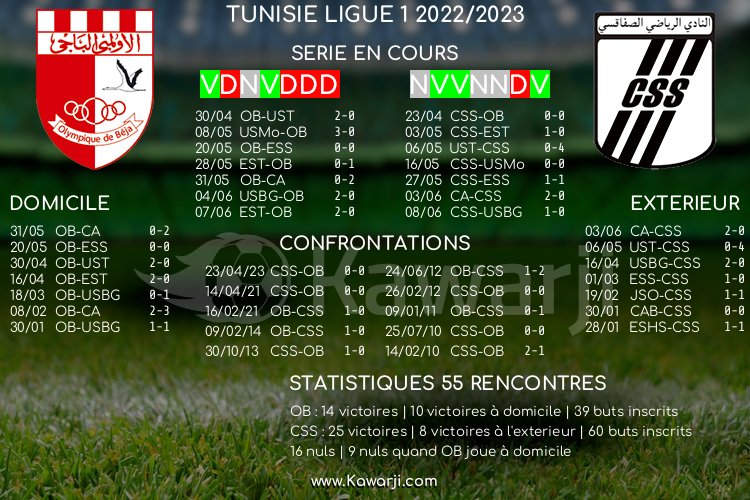 Avant les rencontres prévues ce dimanche pour le compte de la 11ème journée de la phase de play-off en Ligue 1 tunisienne 2022-2023, voici l'historique et les statistiques relatifs à ces confrontations :