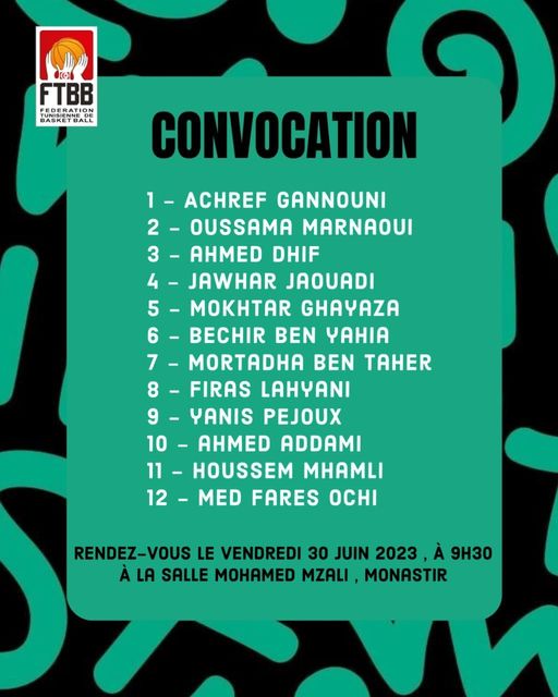 La Fédération Tunisienne de Basket-ball a communiqué la liste des joueurs convoqués pour un stage de préparation.