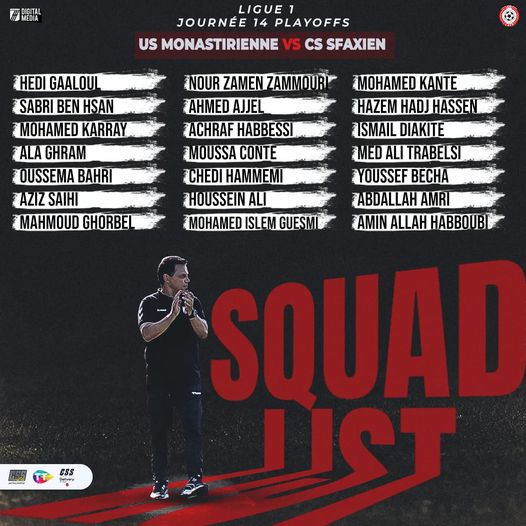 Le staff technique du Club Sportif Sfaxien a communiqué la liste des joueurs convoqués en vue de la rencontre de la 14ème journée de la phase de play-off en Ligue 1.