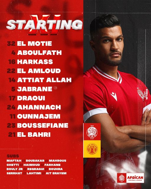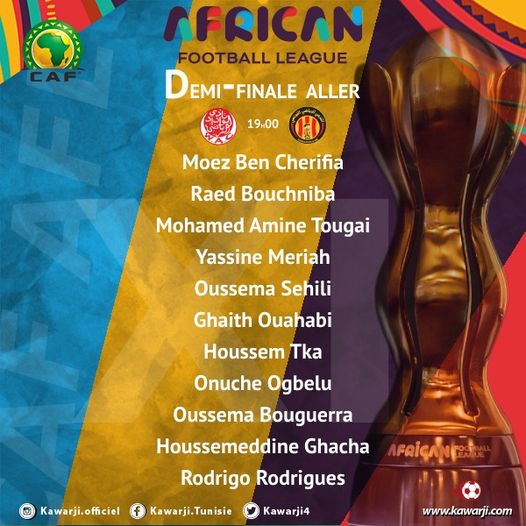 Suivez avec nous sur Kawarji à partir de 19h00 l'évolution du score de la rencontre de l'African Football League entre le Wydad Casablanca et l'Espérance de Tunis :