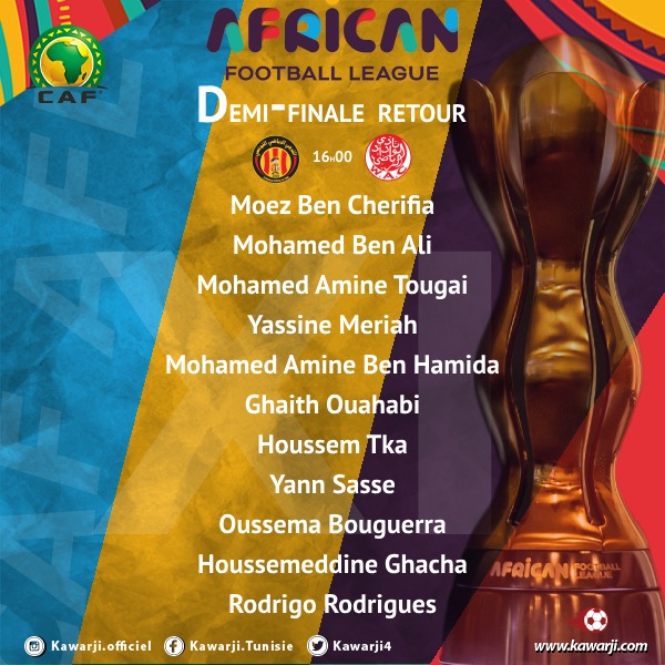 Suivez avec nous sur Kawarji à partir de 16h00 l'évolution du score de la rencontre de l'African Football League entre l'Espérance de Tunis et le Wydad Casablanca :